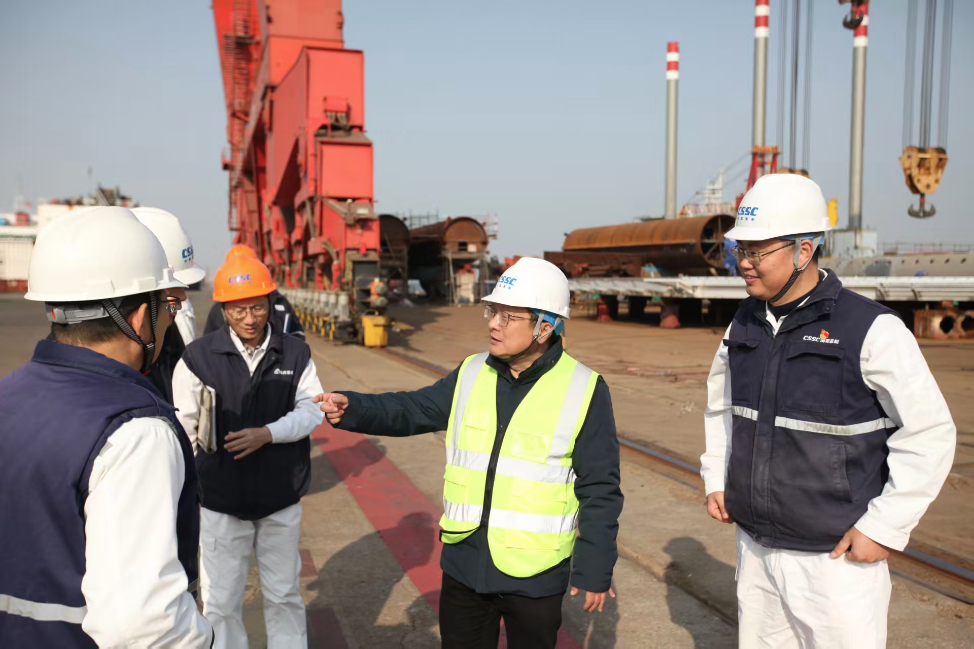 在海西重機,潘文勝重點檢查了重大事故隱患、危險作業(yè)、有限空間、消防管理、危化品、腳手架以及生產(chǎn)現(xiàn)場目視化管理等安全管理執(zhí)行情況,對海工平臺項目安全管理、現(xiàn)場安全目視化及小件存放等工作給予肯定。就后續(xù)安全管理工作,潘文勝提出三點要求:一是以PT38平臺項目為示范點,形成完整的策劃方案和指導(dǎo)性文件,進一步提升平臺項目安全管理水平;二是推進海工平臺消防管理標準化建設(shè),在固定消防器材基礎(chǔ)上,實行動火作業(yè)點消防器材動態(tài)配置,提升平臺消防保障能力;三是優(yōu)化總配電站應(yīng)急響應(yīng)機制,構(gòu)建變配電系統(tǒng)雙重應(yīng)急聯(lián)動響應(yīng)機制,提升應(yīng)急管理響應(yīng)效率和處置能力。