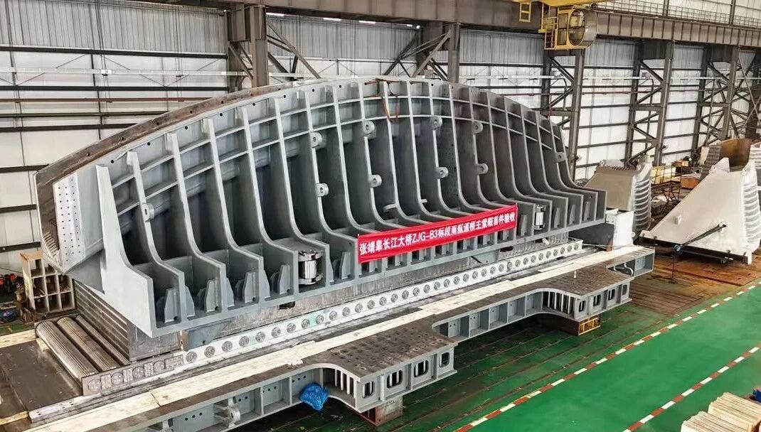 公司突破了高硬度承板淬火、加工等核心制造工藝瓶頸。通過精密的熱處理控制和加工技術(shù),使產(chǎn)品關(guān)鍵承力部件獲得了極高的硬度、耐磨性與穩(wěn)定性,在張靖皋長(zhǎng)江大橋南航道橋自平衡主索鞍上得到應(yīng)用,為橋梁索鞍的質(zhì)量穩(wěn)定性提供了重要保障,展現(xiàn)了公司在超大型復(fù)雜結(jié)構(gòu)索鞍領(lǐng)域的技術(shù)科研與制造能力。