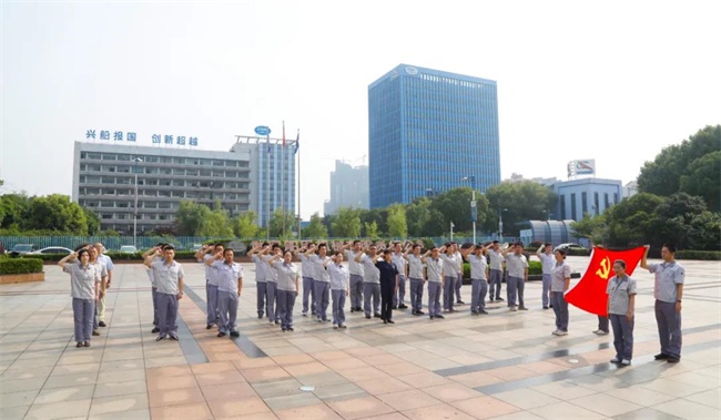 7月1日上午,船機廣場上驕陽映照著黨旗,中國船舶武漢船機36名新黨員胸口的黨徽熠熠生輝。在中國共產(chǎn)黨99歲生日的這一天,他們在黨旗下第一次莊嚴(yán)宣誓,說出一名共產(chǎn)黨員一生中最重要的承諾。