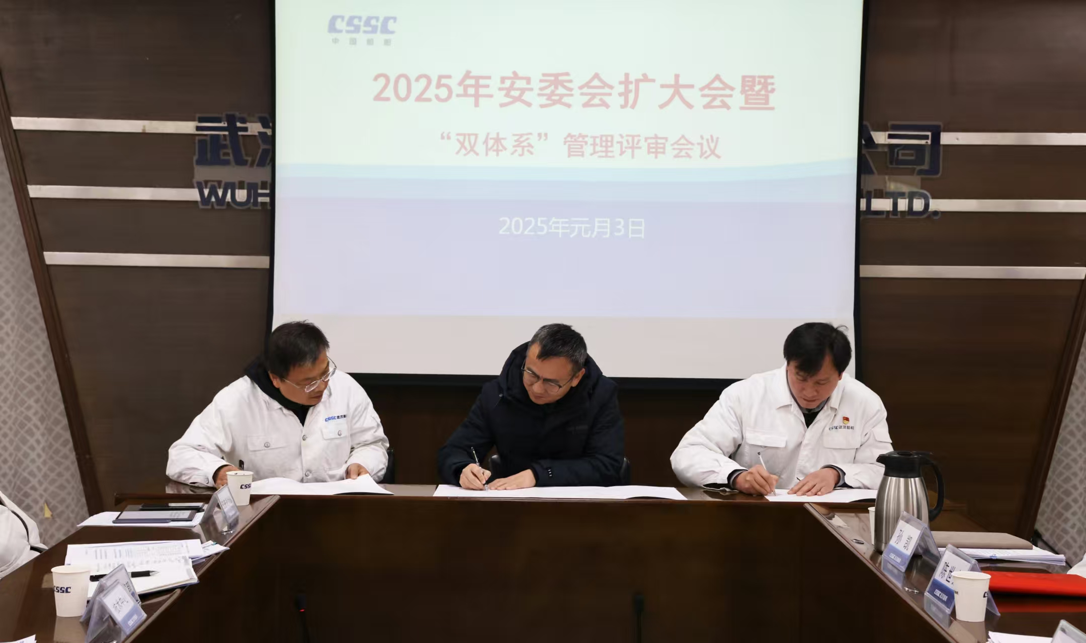 為深入貫徹習(xí)近平總書記關(guān)于安全生產(chǎn)重要論述、重要指示批示精神和中國船舶2025年度安全、環(huán)保及核安全工作精神,堅(jiān)決筑牢安全防線,1月3日,公司召開2025年安委會(huì)擴(kuò)大會(huì)暨“雙體系”管理評(píng)審會(huì)議。會(huì)議由公司黨委副書記、總經(jīng)理程立兵主持,公司領(lǐng)導(dǎo)班子全體成員、各相關(guān)部門負(fù)責(zé)人參加會(huì)議。