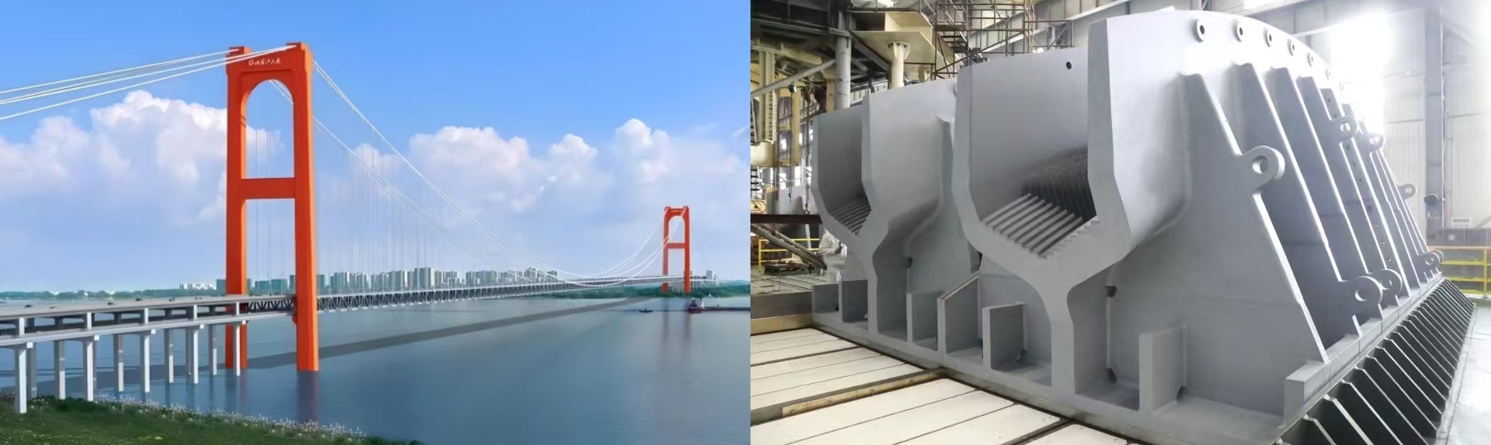 新興產(chǎn)業(yè)之懸索橋索鞍索夾:天塹通信息賦能,品質(zhì)建設(shè)中國橋。武漢船機(jī)公司是國內(nèi)建造大跨度懸索橋索鞍索夾最具實(shí)力的企業(yè)之一。公司以加快新一代信息技術(shù)與制造業(yè)深度融合為主線,發(fā)揮重型起吊設(shè)備和大型數(shù)控落地鏜銑床等設(shè)備優(yōu)勢,大力推進(jìn)懸索橋索鞍索夾綠色、智能制造技術(shù)應(yīng)用和發(fā)展進(jìn)步。2024年以來,公司相繼承接了張靖皋大橋、李埠大橋、哈爾濱松花江特大橋、廣東獅子洋大橋等多個項(xiàng)目的索鞍索夾,為助力打造國家級綠色示范工程和國家品質(zhì)工程,打造國民經(jīng)濟(jì)建設(shè)和我國橋梁事業(yè)的健康發(fā)展進(jìn)步貢獻(xiàn)了力量。