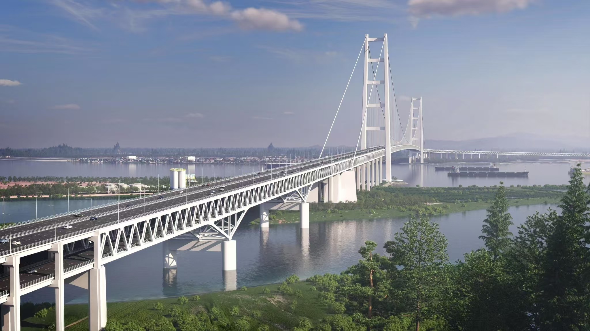 獅子洋大橋超大型索鞍、索夾制造工藝研究:廣東獅子洋大橋采用主跨2180米雙層鋼桁梁懸索橋的方案“一跨過江”,創(chuàng)下多項(xiàng)世界第一紀(jì)錄,主纜纜力達(dá)到數(shù)萬噸。武漢船機(jī)技術(shù)團(tuán)隊(duì)深度參與該項(xiàng)目設(shè)計(jì)研究,在超大型索鞍制造工藝研究、主索鞍頂推性能研究、大直徑索夾研制等課題研究工作中進(jìn)行技術(shù)攻關(guān),突破了索鞍高強(qiáng)度鋼材應(yīng)用、高強(qiáng)索鞍滑動(dòng)副研制、特大直徑索夾制造及超大型鑄焊索鞍加工、焊接,有力支撐了這座世界級跨海通道的建設(shè)。