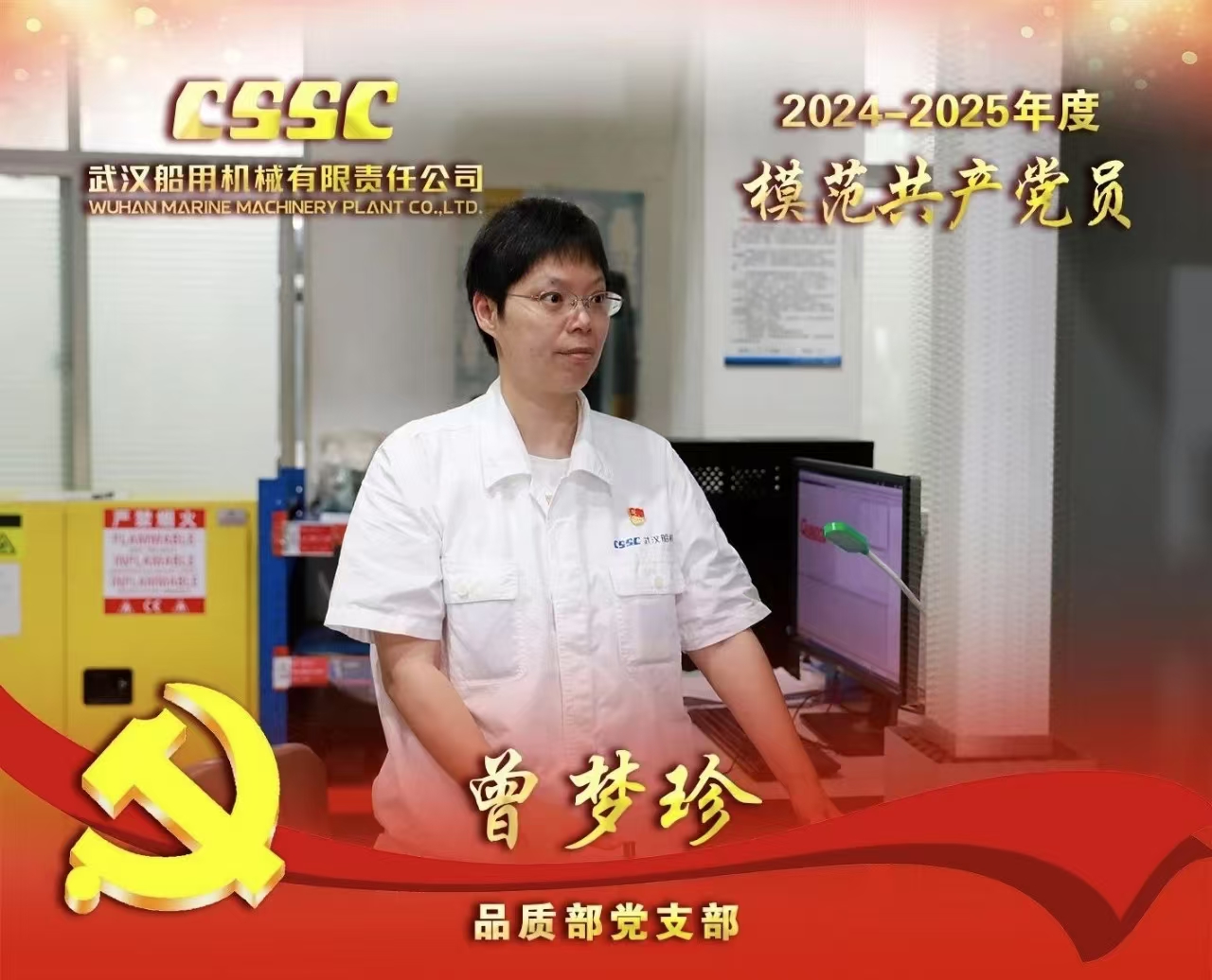 在推動公司高質(zhì)量發(fā)展進程中,有一批堅守崗位、擔(dān)當(dāng)作為的模范共產(chǎn)黨員,他們攻堅克難、奮勇前進,以過硬本領(lǐng)不斷推動工作提質(zhì)增效,將先鋒模范作用體現(xiàn)在生動實踐中,深刻詮釋了武漢船機“三品三心”企業(yè)核心價值觀。