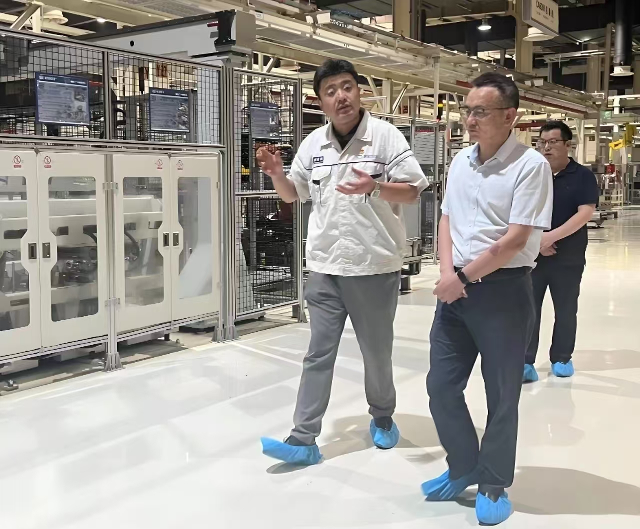 程立兵一行參觀了解放動力惠山基地,現(xiàn)場學習了智能制造、精益管理和安全生產(chǎn)等方面做法。解放動力惠山基地以“超級綠色”“超級智能”“超級精益”三大特性展示了其高標準和先進性,致力于打造“世界領先的重型發(fā)動機智能制造基地”,將精益化和綠色化貫穿生產(chǎn)全過程,實現(xiàn)工廠運行管理智能化。智能制造車間里忙碌的機器人、自動AGV物流小車、智能立體庫、綠色熱試線等引人注目,程立兵一行表示解放動力在智能化改造、數(shù)字化轉型、探索綠色低碳可持續(xù)發(fā)展等方面對公司具有較強的借鑒和啟示意義。