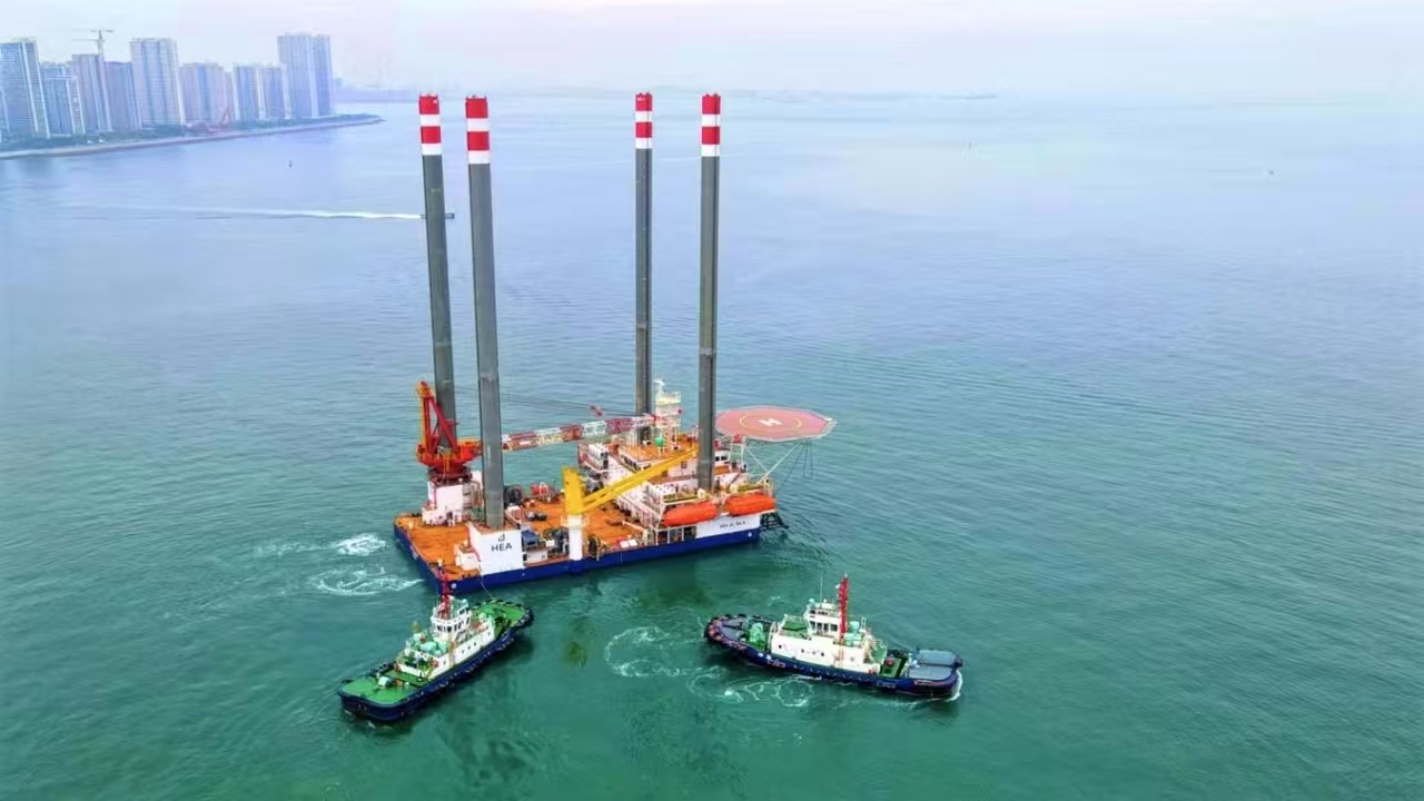 9月27日,TYPE3 PRO第二座自升式海上作業(yè)支持平臺下水后,經(jīng)過升降系統(tǒng)調(diào)試,四條樁腿平穩(wěn)扎進海底實現(xiàn)了平臺站樁,隨后開展了平臺樁腿接長工作。