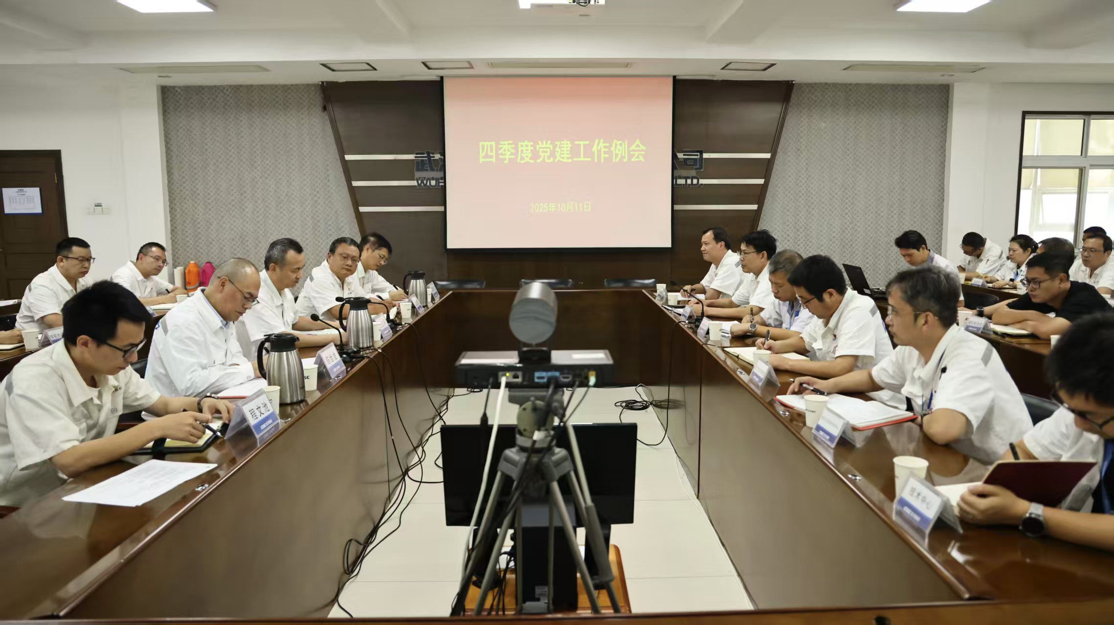 10月11日,中船集團武漢船機召開2025年四季度黨建工作例會,傳達學習中央和上級有關(guān)會議精神,安排部署近期黨建重點工作。公司領(lǐng)導程立兵、潘文勝、陳世龍、胡發(fā)國、程文池出席會議。會議由公司黨委委員、總會計師陳世龍主持。